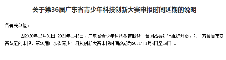 关于第36届广东省青少年科技创新大赛申报时间延期的说明