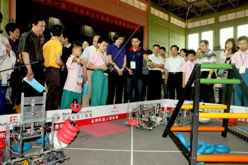 2011年5月6-8日,第十一届广东省青少年机器人竞赛在惠州市第一中学高中部隆重举行。竞赛由广东省科学技术协会、惠州市人民政府联合主办,广东省青少年科技中心、广东省青少年科技教育协会、惠州市科学技术协会、惠州市教育局、惠州市惠城区人民政府、惠阳区人民政府承办。广东省科学技术协会党组成员、副主席吴焕泉、惠州市市委常委、常务副市长张瑛、惠州市人大副主任黄新林、惠州市政协副主席邓穗玲、广东省科学技术协会科普部部长黄善辉、广东省青少年科技中心主任林树坚、惠州市科协党组书记、主席黄细花等领导出席了开幕式。
