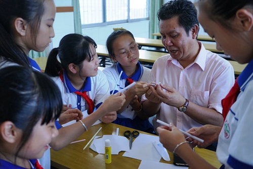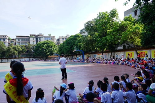 东莞市长安镇第二小学校长袁肖娟为全区50多名科技教师作了“我的幸福 我作为”的专题讲座,详细介绍长安二小组织开展青少年科技活动的做法和经验,为当地学校推荐多项成本低廉、趣味性强的科技赛事活动。航模和机器人表演团队则为实验小学的全体师生送上精彩的科技表演,一架架飞机腾空而起,做出盘旋、翻滚、俯冲等高难度动作,学生们看得口瞪目呆、津津有味,最新款的精灵4无人机表演更将活动推动高潮。纸飞机竞技、纸火箭竞技、科学实验和机器人搭建等4场进班级活动让学校2-6年级200多名学生现场创玩科技,既有低成本的纸飞机和纸火箭,又有高大尚的机器人。学生们通过完成一个个科学实验,感受了科学就在身边、乐趣无穷的道理,各类科技竞技又让青少年从中培养科技创新精神,现场PK动手实践能力。
