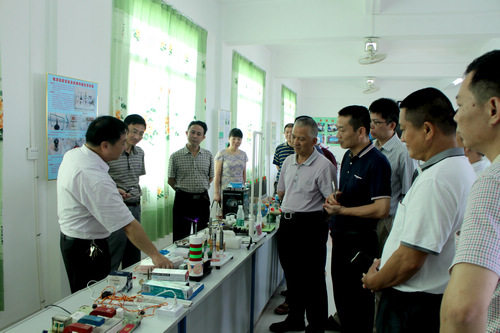 在工作室,大家参观体验了学校师生的科技创新作品,“利用特斯拉电弧演示尖端放电”的教具、仿生物学的“机器虫”、利用虹吸原理展示的“会生气的鸡蛋”……参观者都被这些作品深深吸引了。吴焕泉副主席对罗伟群老师的辛勤付出和对科技教育孜孜不倦的热情给予高度评价,希望像罗伟群老师一样的教育团队要不断发展壮大,希望山区科技教育的星星之火要不断燎原,希望边远农村地区的青少年都能插上科学翅膀在梦想的天空翱翔。