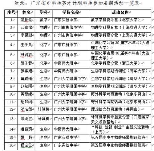 按照全国中学生英才计划管理办公室的部署,我省从26名学员中选派了16名参加夏令营、科学考察、学术交流等10项五大学科的科技活动,下面节录部分学员的感受。