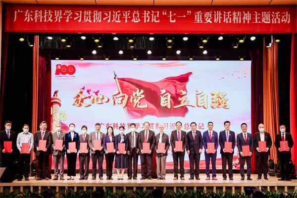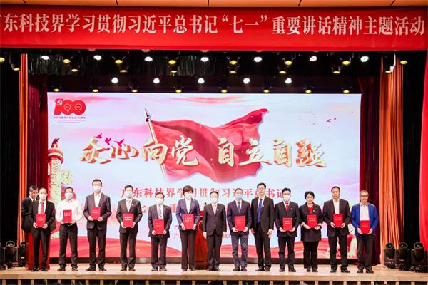 11月8日,由省科协、省科技厅、省科学院、中科院广州分院联合主办,广东科技报社承办的“众心向党 自立自强”广东科技界学习贯彻习近平总书记“七一”重要讲话精神主题活动在广东科学馆举行。省委常委、统战部部长黄宁生出席主会场活动并讲话。活动现场举行了科技工作先进组织单位和优秀科技工作者表彰仪式,第十六届广东省丁颖科技奖获得者、2021广东“最美科技工作者”、农村科技特派员先进组织实施单位和优秀农村科技特派员等获奖代表现场接受颁奖。包括两院院士在内的各战线科技工作者代表在主会场作了汇报演出,全省广大科技工作者通过线上方式观看。