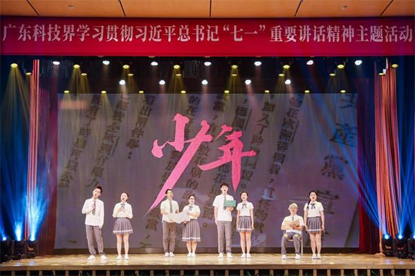主题活动通过“庄严宣告”“百年辉煌”“伟大精神”“复兴之梦”四个章节,以诗朗诵、舞台剧、话剧、舞蹈、合唱等多种形式展现了广东科技界深入学习贯彻习近平总书记“七一”重要讲话精神,进一步凝聚前行力量的生动实践。如第十六届广东省丁颖科技奖获奖者、2021年广东“最美科技工作者”代表带来的诗朗诵《为中华民族伟大复兴再创辉煌》,省护理学会带来的舞台剧表演《最美逆行者》,华南农业大学带来的诗朗诵《永恒的信仰——致敬卢永根院士》,省科协选送的大合唱《南湖的船党的摇篮、保卫黄河、没有共产党就没有新中国》,省科技厅选送的舞台剧《梦的翅膀——农村科技特派员》,中科院广州分院选送的小合唱《少年》,广东省科学院选送的大型歌舞表演《春天的故事》等,反映了广大科技工作者响应党的号召,在各时期积极投身于社会主义革命和建设的恢宏历史与新时代科学家精神。