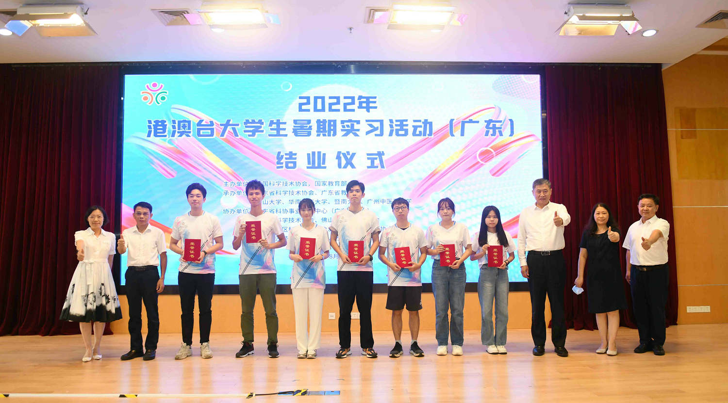 8月28日,2022年港澳台大学生暑期实习活动(广东)结业仪式在广东科学馆顺利举办。省科协党组书记、专职副主席郑庆顺,省教育厅党组成员、副厅长、一级巡视员朱超华出席并致辞,省科协党组成员、专职副主席范英妍,广州市科协党组书记、副主席徐柳及中山大学、华南理工大学、暨南大学、广州中医药大学等联合承办单位相关负责人,广州市科协、佛山市科协、广州开发区科协、南沙区科协、广州南沙经济技术开发区人才发展局、共青团广州市南沙区委员会等相关协办单位代表、实习单位、实习学生代表及相关媒体,共80多人现场参加活动。
