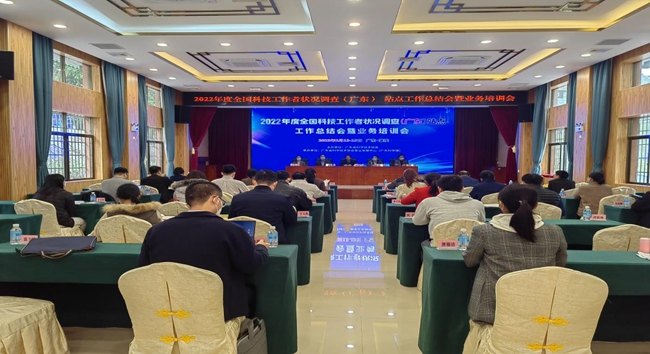 2023年2月14日,2022年度科技工作者状况调查(广东)站点工作总结暨培训会在肇庆召开。会议总结了2022年度科技工作者状况调查站点工作,部署2023年度重点工作,表彰2022年度全国科技工作者状况调查工作先进站点和先进个人,中国科协创新战略研究院统计中心副主任徐婕进行业务培训,各站点进行经验交流。省科协调宣部、省科协事业发展中心负责人,28个中国科协科技工作者状况调查(广东)站点负责人、信息员共40多人参加了会议。