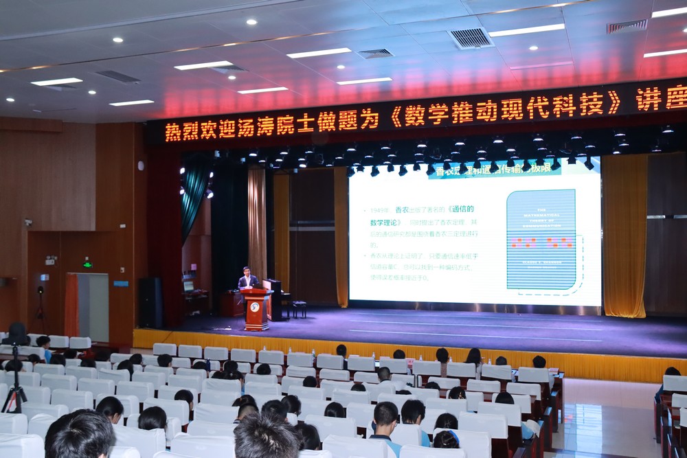 汤涛院士为中国计算数学家,他在讲座中从华为公司极为重视数学专业入手,揭示数学在现代科技中特别是信息科技中的重要作用,让大家明白数学除了人们熟知的证明定理猜想以外,还有更多更广泛深刻的应用。汤院士通过一件件案例,进一步阐述了数学与信息科技、科学计算以及经济金融数学的共生发展,为大家展现了现代数学的魅力和影响。讲座内容深入浅出,例证丰富,同学们听讲入迷,认真思考,10多名学生还现场与汤院士作了互动。