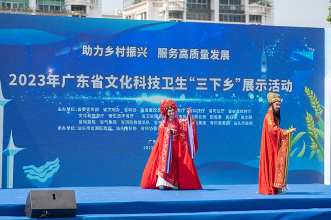5月31日,2023年广东省文化科技卫生“三下乡”展示活动在汕头市龙湖区举办。省科协党组书记、专职副主席郑庆顺,汕头市市长曾风保出席启动仪式并致辞。启动仪式由省科技厅党组成员、副厅长,省外专局局长劳帜红主持。省科协党组成员、专职副主席林晓湧,羊城晚报报业集团党委副书记、副社长李和平,省农科院副院长何秀古,省林业局二级巡视员蔡应华,团省委二级巡视员周选兴,省文联副秘书长、二级巡视员樊广莲,省气象局二级巡视员常越,汕头市政协副主席陈严等主办单位领导和承办单位有关负责同志出席。