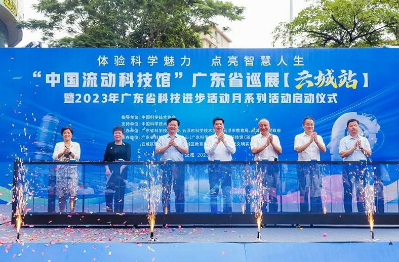 7月20日上午,“中国流动科技馆”广东省巡展(云城站)暨2023年广东省科技进步活动月系列活动在云浮市云城区东方时代广场一楼正式启动。省科协党组成员华旭初;云浮市委常委、统战部部长梁仁球;云浮市科协主席陈华坚;云城区委书记叶伟光等领导以及广大公众、学生代表等共300多人出席了启动仪式。