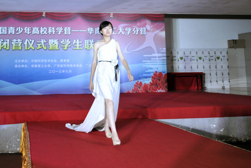 中山大学的营员代表们用图片、视频、PPT等重温了一周的点点滴滴,分享了科学营期间的快乐时光。华南理工大学分营则以一台精彩的联欢晚会作为总结,环保服装设计及风采show、歌唱表演、骑马舞、相声小品、情景剧……一个个精彩的节目无不展现营员们的青春活力。