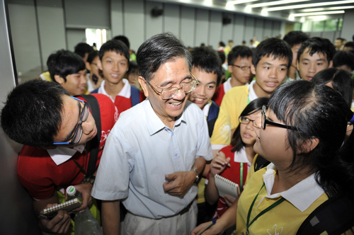 刘焕彬院士与现场学生亲切交流。莫文艺摄 2013年全国青少年高校科学营广东营活动已于7月21日至27日在中山大学和华南理工大学成功举行,来自广东、广西两省区的440多名师生参加活动。我省另有66名师生分赴清华大学、北京航天航空大学、北京师范大学参加了北京营活动。在去年成功举办科学营的基础上,省科协、省教育厅和中山大学、华南理工大学再次紧密合作,精心组织,专门为营员设计了不少符合中学生兴趣的科技活动项目,特色鲜明,广受欢迎。为了打造永不落幕的科学营,我省还开通了科学营专题网站,组织开展征文活动,让更多的青少年学生分享科学营的精彩点滴。