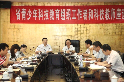 2013年5月17日,我省部分地市青少年科技教育组织工作者和科技教师代表约20人在广东科学馆召开座谈会(来源广东省科协网) 积极创新青少年科技活动形式。佛山市不断完善青少年科技创新大赛,丰富赛事内容,每年还举办中科院老科学家科普演讲团巡回演讲,并已带动周边地市参与。中山市以青少年科技创新大赛为龙头,在全省首创组织开展市级青少年科普活动周,整合社会资源,开展形式多样的科普活动,营造良好的科技教育氛围。东莞市充分利用现代网络技术,建立4个科技教师专业QQ群,出版了59期《会讯》,方便教师交流学习;还围绕天文、环保和科技创新大赛等主题,举办科普展览等活动,走进街镇和学校,宣扬科普知识。茂名市以青少年科普教育基地建设为抓手,佛山市顺德区以知识产权建设为突破口,有力推进当地的青少年科技教育工作。深圳、阳江、梅州等市利用科技进步活动月、学术活动周和全国科普日,举办夏令营、讲座、影视、图片展和科普大篷车进校园等系列活动,促进青少年科技活动全面开展。
