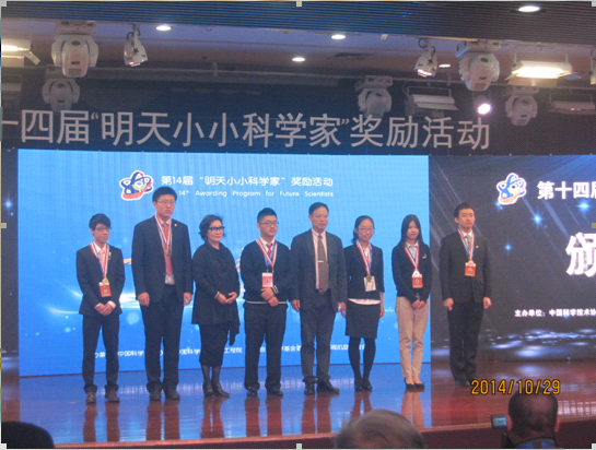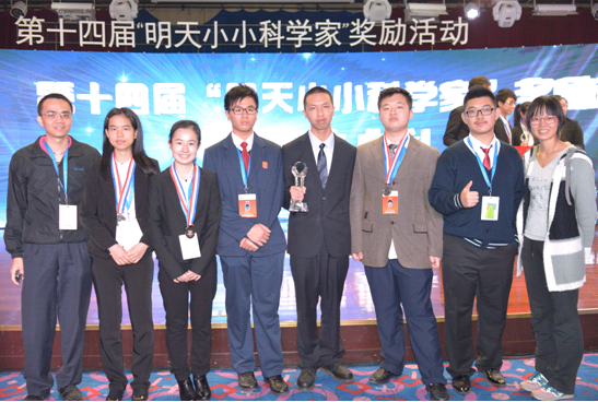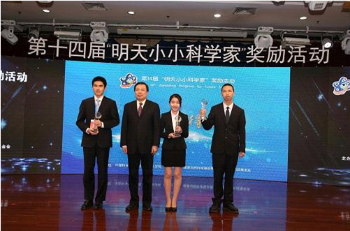 广州市第二中学黄厚均同学(右1)荣获“明天小小科学家”称号