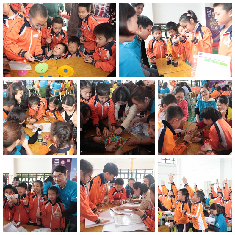 学生、家长和雅培志愿者一起畅玩科学